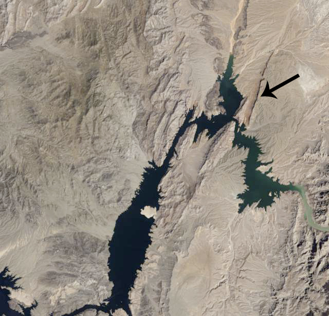 Below are pictures from space of Lake Mead at the where the Colorado river